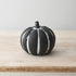 A rustic cement pumpkin in black and white. A beautifully detailed and unique ornament for the home this season. This is a rustic style ornament for the home and any imperfections are part of the painterly design and finish.