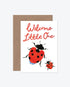 This baby card shows a ladybird parent and baby with red 'welcome little one' cursive lettering across the top. It makes a sweet card for garden enthusiasts who have just become new parents! With its bright artwork and cheerful sentiment, it's sure to bring a smile to any new parent.