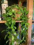 This trailing succulent grows high in the trees, its round leaves cascading from the branches. When grown in plenty of sunlight, Dischidia nummularia may reward you with tiny, bell-shaped white flowers along its vines.