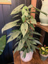 Thrives in bright indirect light, though will tolerate shade. Water when the soil has completely dried out.
