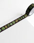 This washi tape features a design displaying individual leaves of monstera deliciosa, monstera adansonii, maranta, angel wing begonia, and watermelon peperomia against a dark background. A perfect present for an indoor gardening enthusiast, and an ideal material for scrapbooking.